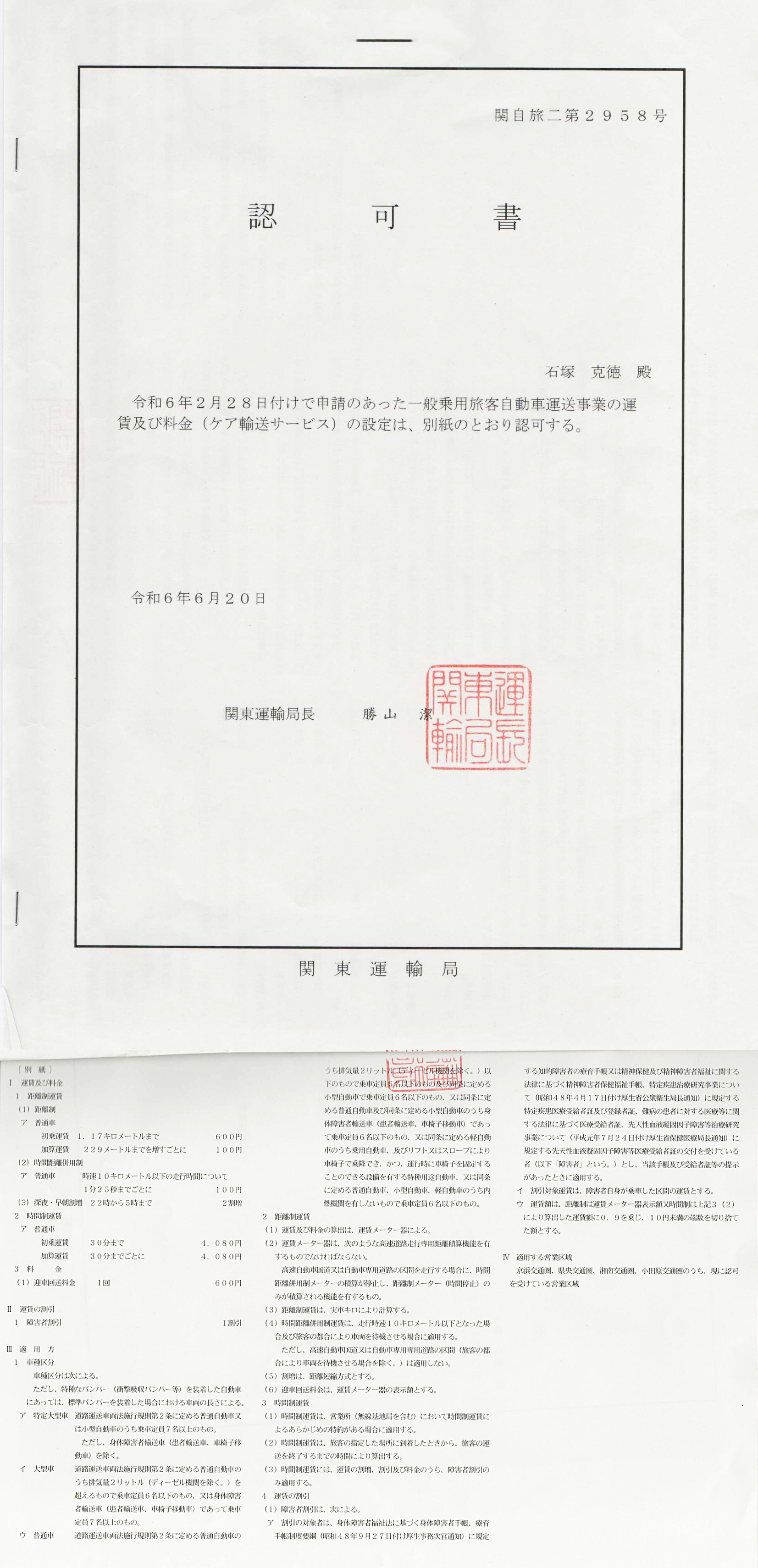 22時~翌5時運賃2割増車両、機材、備品等汚された場合、1500円を頂いております